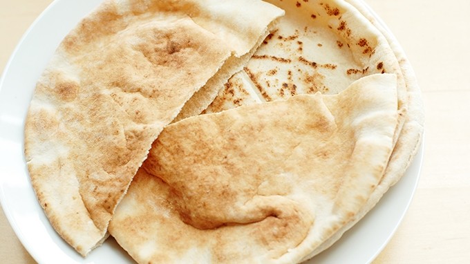 ピタパンとはこういうものだそうです.地中海沿岸域では よく食べられる,小麦粉だけのパンです.